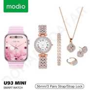 Modio U93 Mini 40 mm Smart Watch With 3 Pair Strap And Stylish Analogue Watch With Diamond Jewellery Accessories Combo For Ladies And Girls