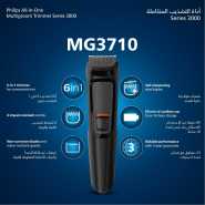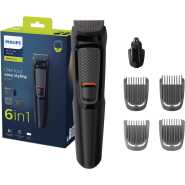Philips Multigroom Series 3000 for Face, 6-in-1 Grooming Kit for beard, moustache, nose & ear hair, cordless, 60 min runtime, 16h full charging time, MG3710/33,Black