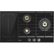 Newmatic 90cm Built-in Hob, 3 Gas Burners + 2 Induction Zones, PM932FC-PRO, Auto Ignition, Flame Failure Device, Sliding Sensor Touch Control, Cast Iron Pan Supports – Black