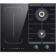 Newmatic 60cm Built-in Hob, 2 Gas Burners + 2 Induction Zones, PM622FC-PRO, Auto Ignition, Flame Failure Device, Sliding Sensor Touch Control, Cast Iron Pan Supports – Black