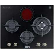 Newmatic 60cm Built-in Hob PM631VSTGB, 3 Gas Burners + 1 Electric Zone, Flame Failure Device, Cast Iron Pan Supports, Auto Ignition -Black