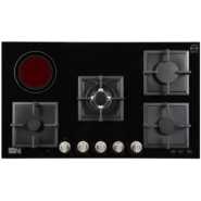Newmatic 90cm Built-in Hob PM941VSTGB, 4 Gas Burners + 1 Electric Zone, Flame Failure Device, Cast Iron Pan Supports, Auto Ignition -Black