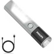 Philips Portable Torch with Camping Light, 200LM LED Flashlight Rechargeable, 4 Lighting Mode, 150M Coverage, Anti-Drop Handheld Flash light for Indoor, Outdoor, Camping, Hiking, Emergency Light