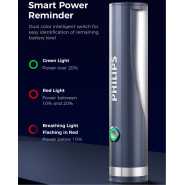 PHILIPS Handheld Torch Light, 2000mAh Rechargeable Torch Light with 2 Modes,400LM & IP44 Waterproof, Portable Flash Light for Home, Camping, Hiking, Emergency(Gray)
