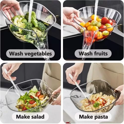 - Easy to use: Evenly distributed drain holes reduce pressure and allow the water to drain quickly. You just need to put the fruit to be washed in the drain basket, while the fruits remain securely in the drain basket. Or use it as a bowl to serve any food.