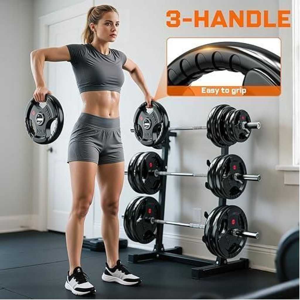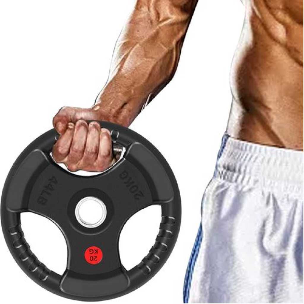 - Featuring three large openings with textured strips, these plates offer a secure grip and are clearly labeled in both pounds (lb) and kilograms (kg) for easy identification.