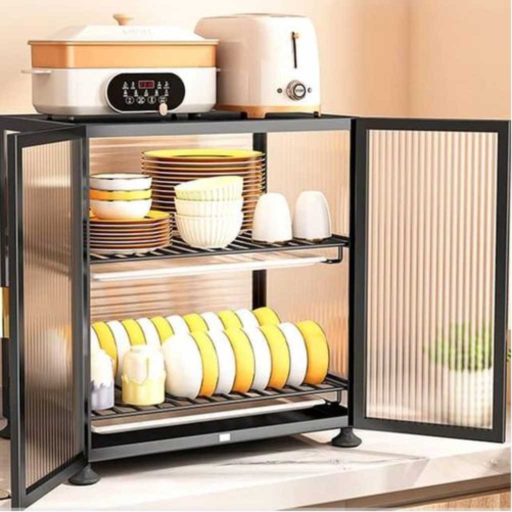 This kitchen draining cupboard, dish rack, small countertop cabinet, leftover cabinet, simple storage shelf can be placed in the kitchen class supplies, but also can be used in other rooms to facilitate the organisation of storage.