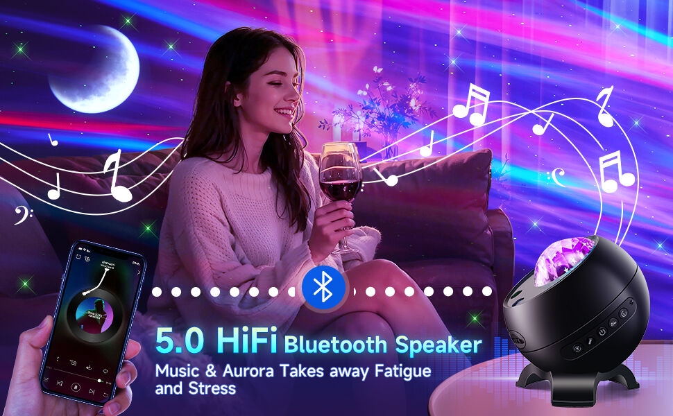 - Upgrade of light effect: The version of the northern lights effect has 15 colors+5 moons+green star,Milky Way’s northern light projection effect is more colorful than the others!