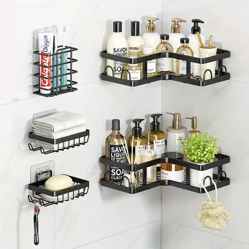 【5 Piece Shower Organizer Set】:Our bathroom shower shelves set includes 2 shower caddies,2 soap holders,1 toothbrush holder, and 5 adhesives. The large storage capacity bathroom organizer shower can store all of your bath supplies. Also, the shower rack is suitable for the bathroom, kitchen, tool room, etc. Taking up a lot of different roles to meet your needs.