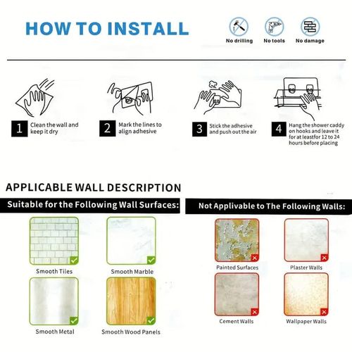 【No Drilling & Easy Installation】Our shower holder organizer for the inside shower simply sticks adhesives, no drilling, taking all 5 mins without any tools needed, no damage to the walls. The elegant design brings you a comfortable experience.
