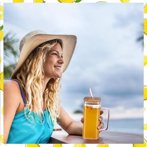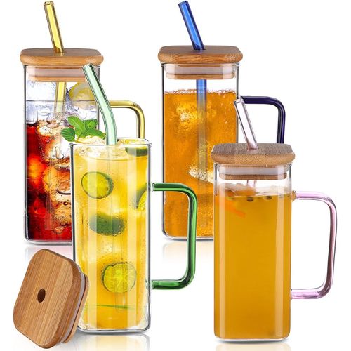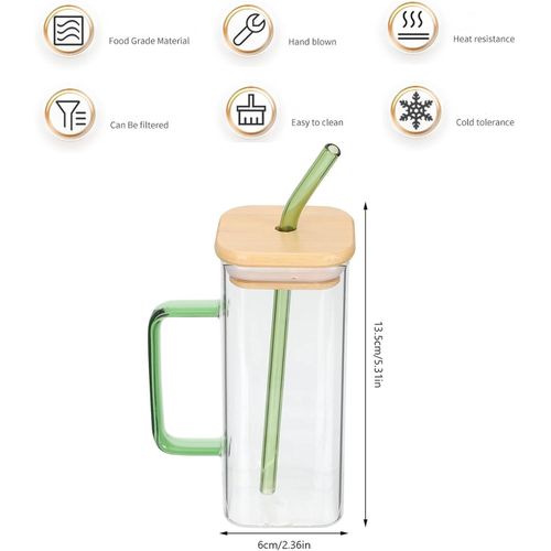 - Water bottle material: square glass cups made of high quality high borosilicate glass, square drinking glasses have lids and straws, tea glasses can be used for a variety of cold drinks, such as fruit juices, beverages, fruit tea, milk tea.