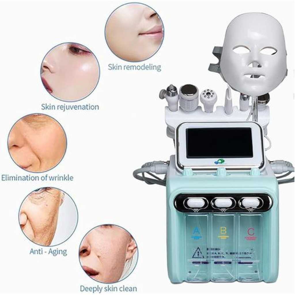 • 【Beauty Starts Here】 Our hydra dermoabrasion beauty SPA machine features 7 in 1 functional design, 6 functional heads to help you rejuvenate wrinkle moisturizing. This is a painless and comfortable skin care method that you need, safe and effective. Hydro facial device is also equipped with a seven-inch touch control screen for convenient control of time and mode.