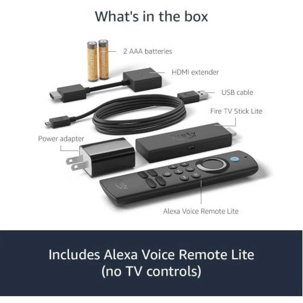Everything you need right out of the boxFire TV Stick Lite comes with all the essentials you need to get set up and start watching with ease. Jump between movies, live news, sports and must-see shows with quick app starts and fast streaming in Full HD. |
