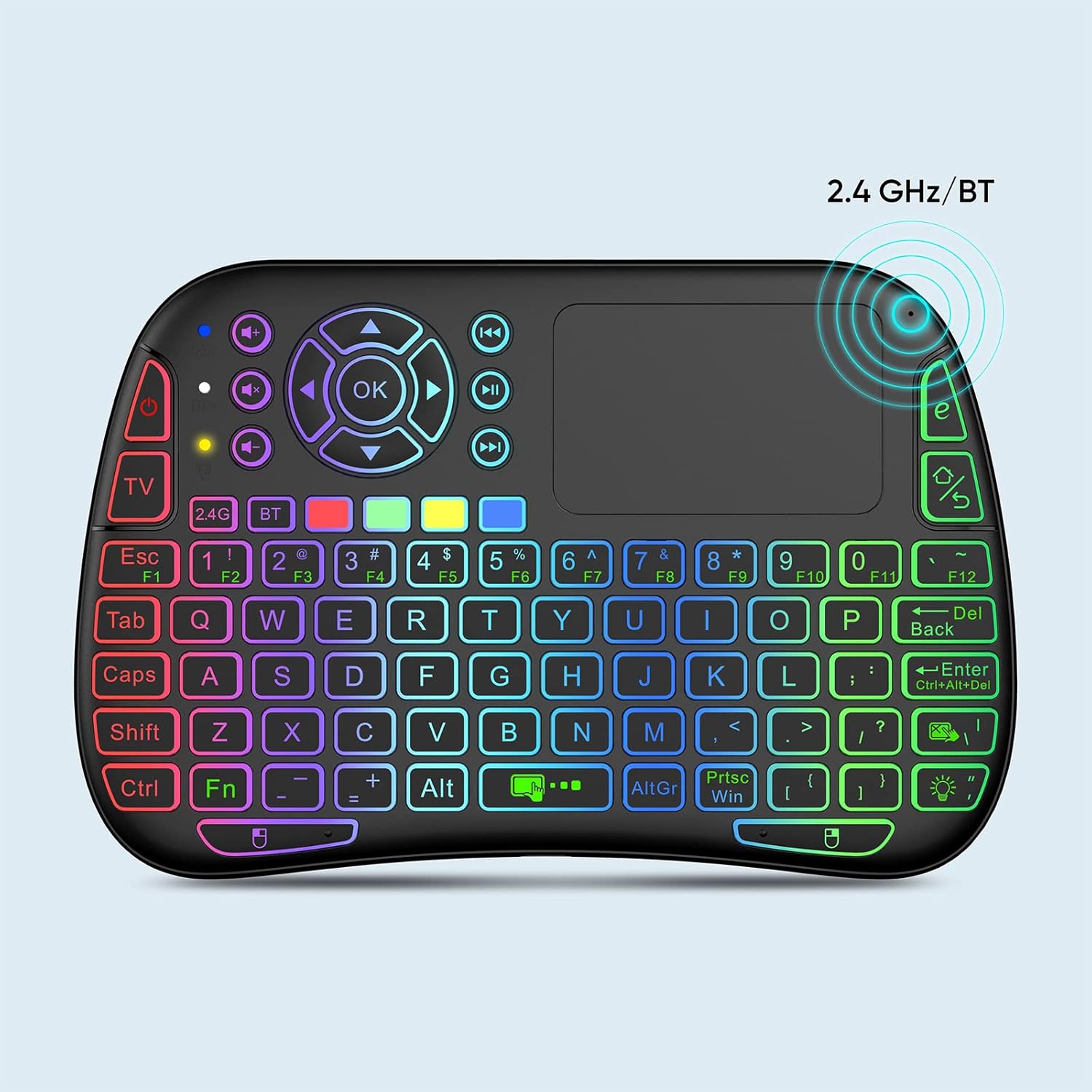 - 7-color RGB backlight, multimedia buttons, directional keys, power switch, left and right buttons, and scroll wheel. Wireless mini power keyboard, built-in rechargeable lithium-ion battery