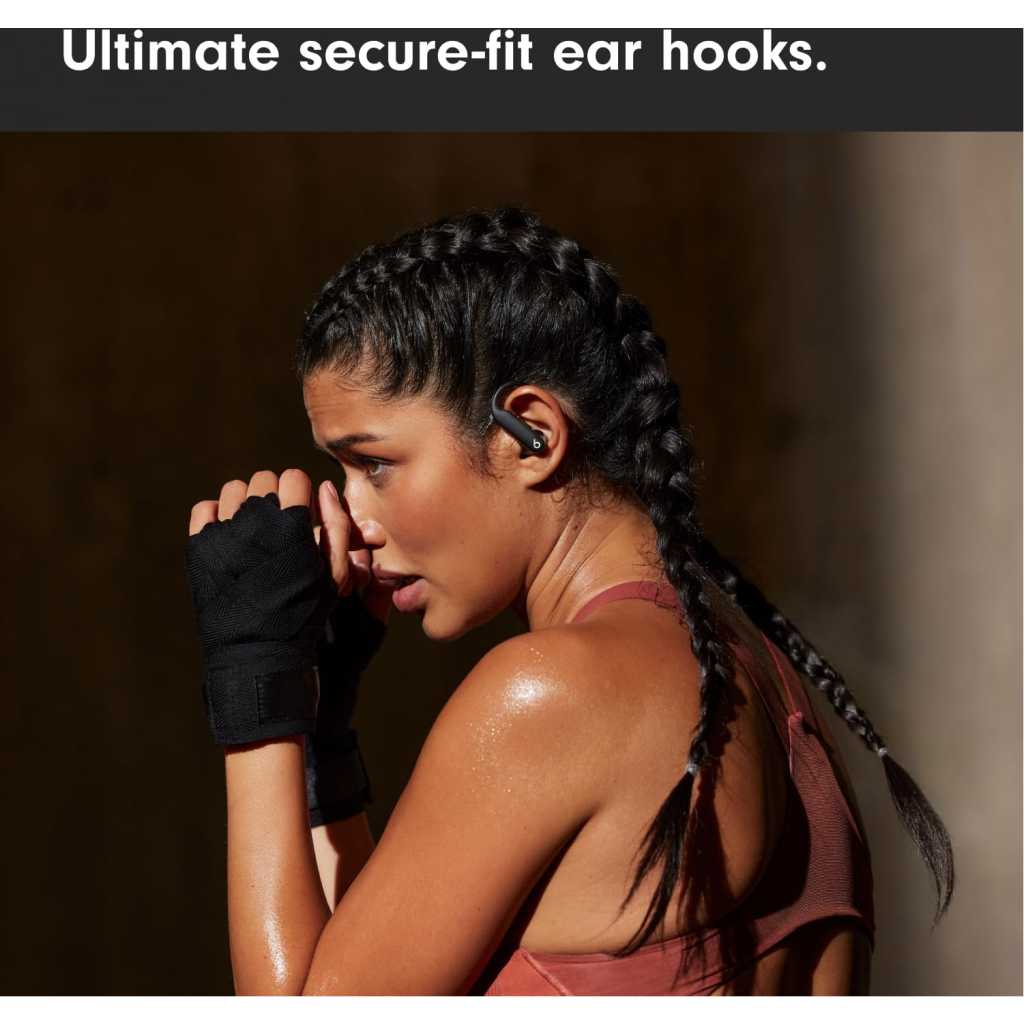 Finding the right fit is crucial to achieve optimal comfort, sound quality and heart-rate accuracy. Powerbeats Pro 2 feature a redesigned secure-fit ear hook made with a nickel-titanium alloy, allowing for ultimate comfort and flexibility. And we offer five sizes of ear tips to ensure a comfortable and secure fit with a proper acoustic seal for everyone: extra-small, small, medium (pre-installed on earbuds out of box), large and extra-large. To put on Powerbeats Pro 2, first tuck the ear hook behind your ear, then insert the earbud. If necessary, rotate it back slightly to ensure a stable fit with optimal comfort