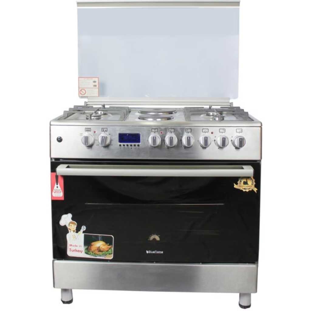 Blueflame Cooker 90x60cm 4-Gas Burners, 2-Electric Plates 9042ERF; Auto Ignition, Grill, Electric Oven, Rotisserie – INOX – Silver