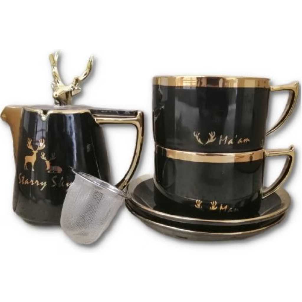 Breakfast Tea Pot & 2Cup saucer Gift Set, – Black