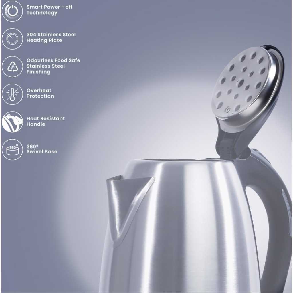 - Flat heating element for boiling hot water in seconds. A concealed stainless steel heating element ensures fast boiling and easy cleaning