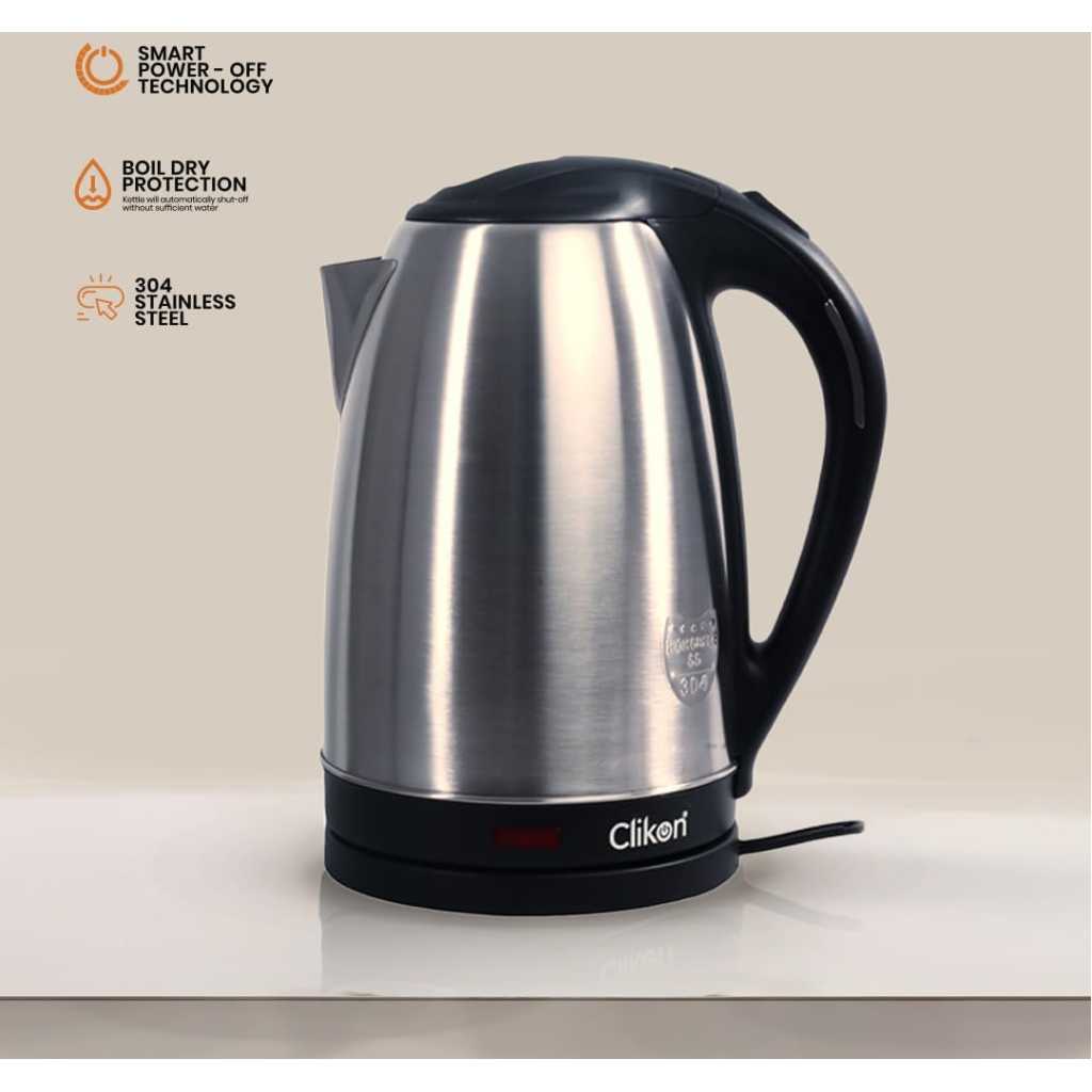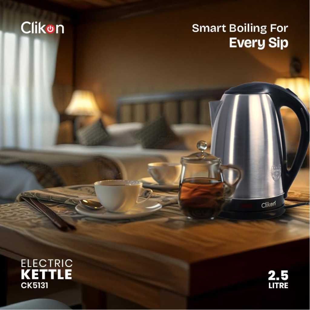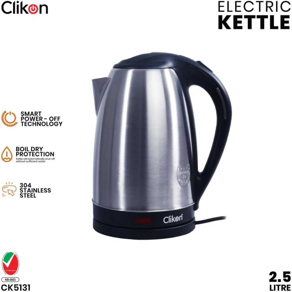 Clikon – CK5131 – STAINLESS STEEL KETTLE- 2.5 LITRE, Has a Stainless Steel Design to blend in with your Kitchen Utensils.With up-to 2.5L capacity, you can boil Very Large amounts of Water in a short period of time.This Electric Kettle will replace the traditional way of boiling water from a gas stove, and eliminate the hassle of constantly monitoring the Gas stove every few minutes. Clikon – CK5131 – STAINLESS STEEL KETTLE- 2.5 LITRE , Has the Following :-2.5L CapacityHigh Grade (SS304) Stainless Steel BodyAuto Cut-OffBoil Dry protectionHeat resistant handle360 Swivel Base Power CordStorage Power Indicator Light