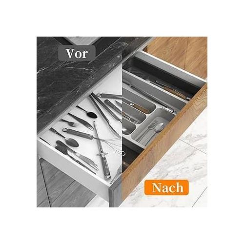 Cutlery Drawer Divider, Expandable Utensil Drawer Organiser Large Kitchen Drawer Organiser Cutlery Trays for Kitchen Drawers Adjustable Silverware and Flatware Holders for Knives Forks