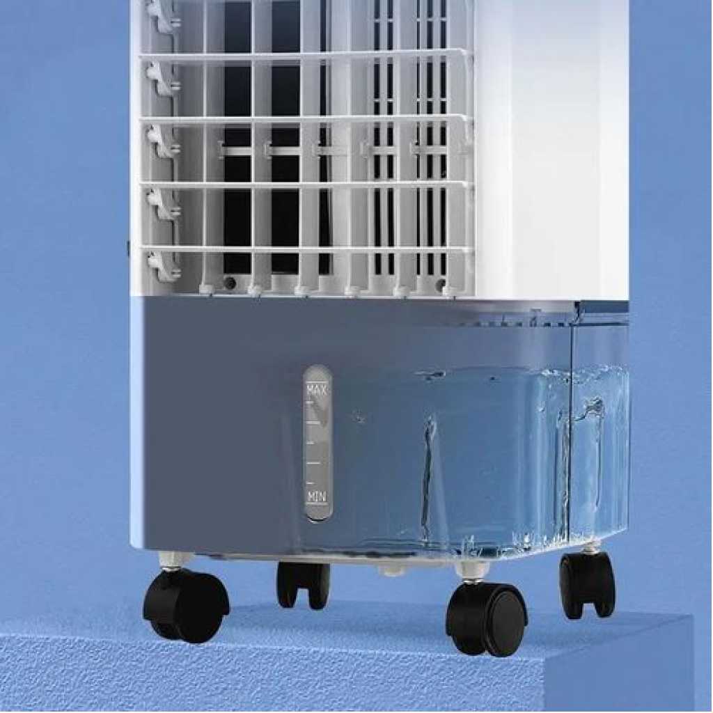 Featuring a sleek white design, this air cooler blends seamlessly with any decor, adding a touch of modern style to your space. Its compact size and portable design make it easy to move from room to room, so you can stay cool wherever you go.
