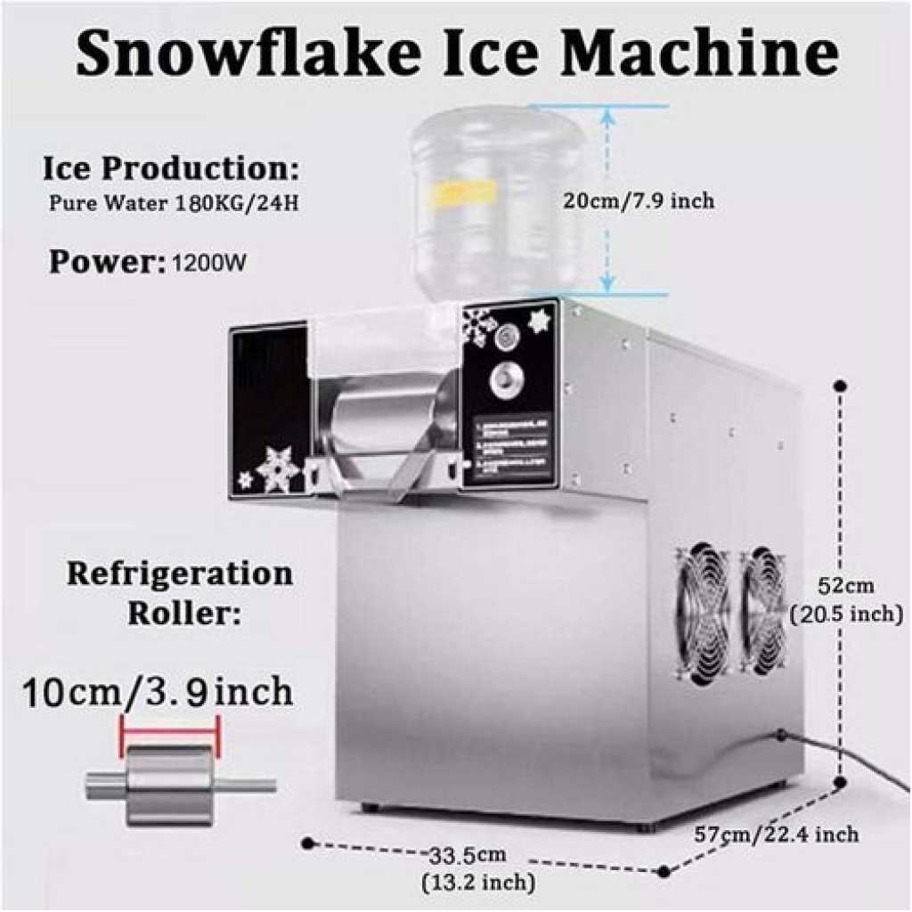 • 【Efficient】: The smart snowflake ice maker has a power of 360W/750W/1200W, uses imported energy-saving compressors, has strong power, and produces 60KG/120KG/180KG/24 hours of ice. In the hot summer, the ice maker brings you a different coolness.