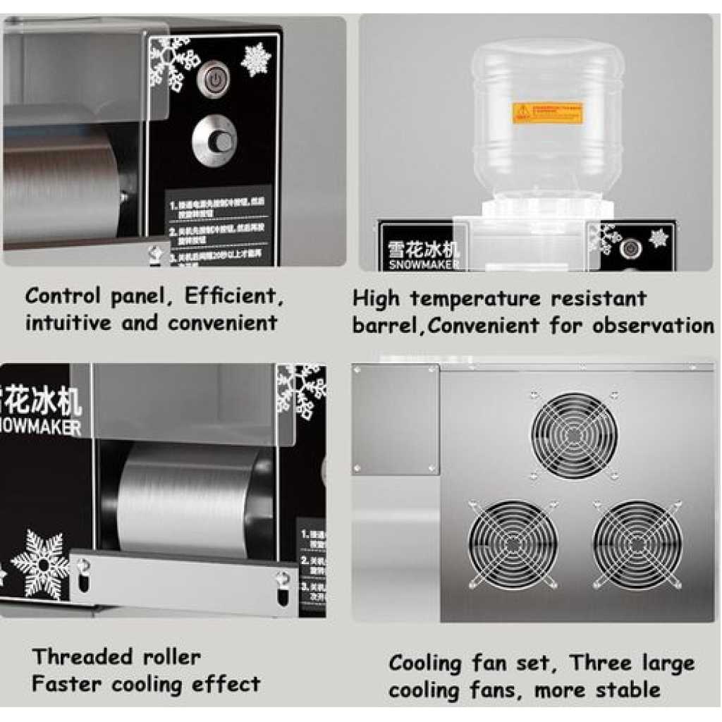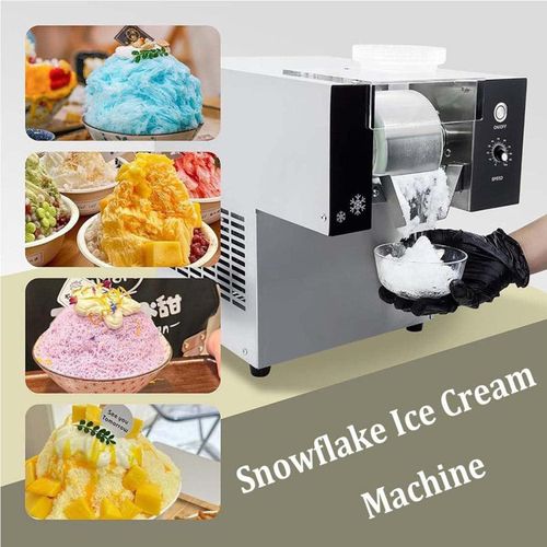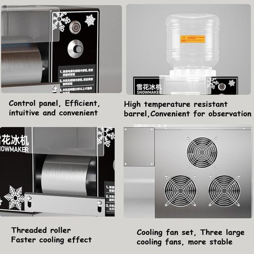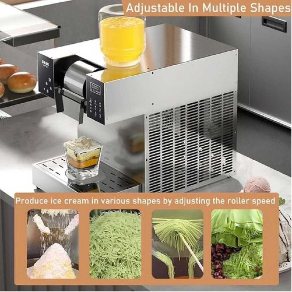 • ♣【Easy to use】Equipped with a convenient speed controller, by adjusting the roller speed and liquid concentration, this electric snowflake ice machine can make ice cream of various textures, such as snow ice shape, strip pasta shape and waterfall shape, each shape has a silky and smooth texture.