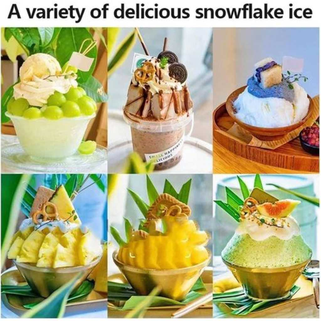 • ♣【Wide range of applications】The snowflake ice machine is suitable for making ice cream of various flavors. Snowflake ice machine can be used as a commercial way to make delicious smoothies and cold drinks for everyone, suitable for family gatherings, dessert shops, bakeries, pastry shops and cafeterias.