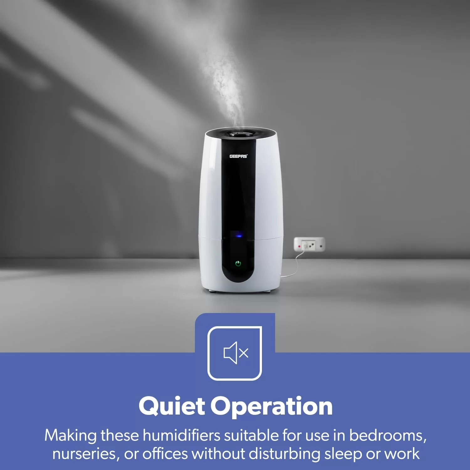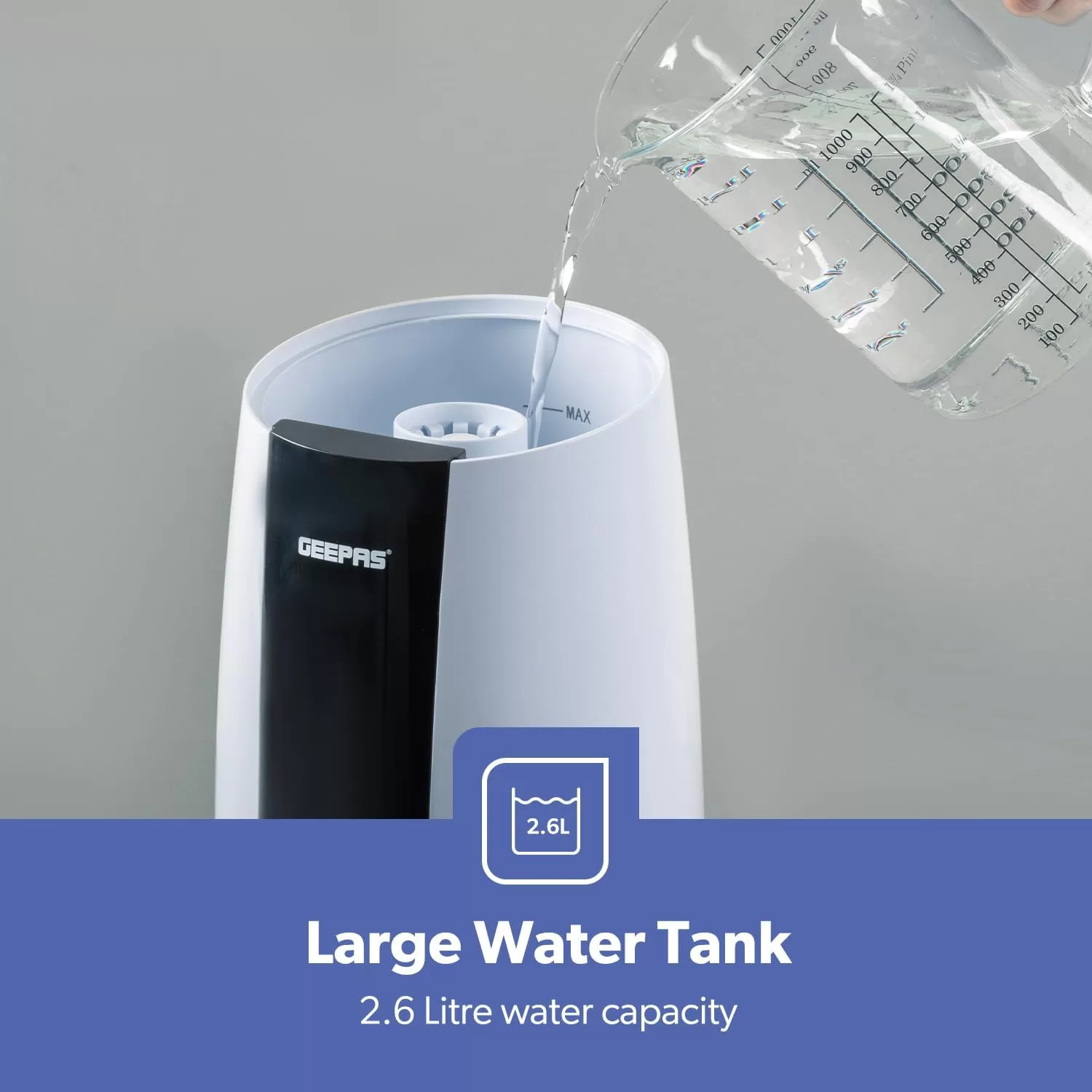 GEEPAS Humidifier for Bedroom, 2.6L Top Fill Cool Mist Large Room, 360° Rotatable, Night Light Auto Mode, 35dB Noise Level Humidifiers for Baby, Essential Oil Diffuser, Baby, Home, Work, GHU63072