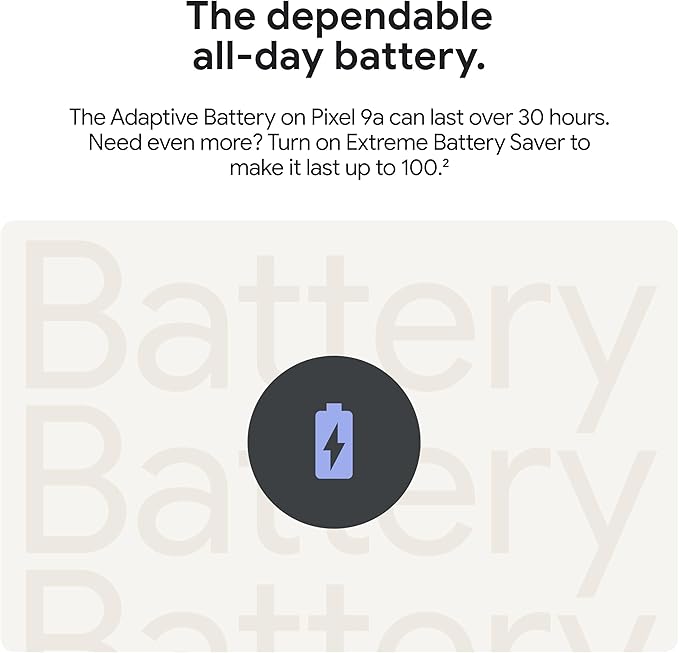 - Google Pixel’s Adaptive Battery can last over 30 hours; turn on Extreme Battery Saver and it can last up to 100 hours, so your phone has power when you need it most