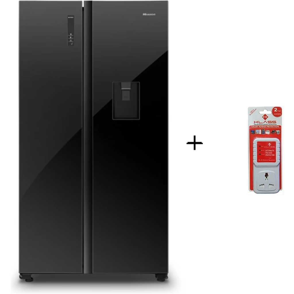 Hisense 750-liter Side-by-side Refrigerator with Dispenser – Black, Side By Side Refrigerator, Auto Defrost, Glass Door.