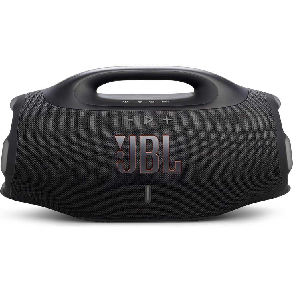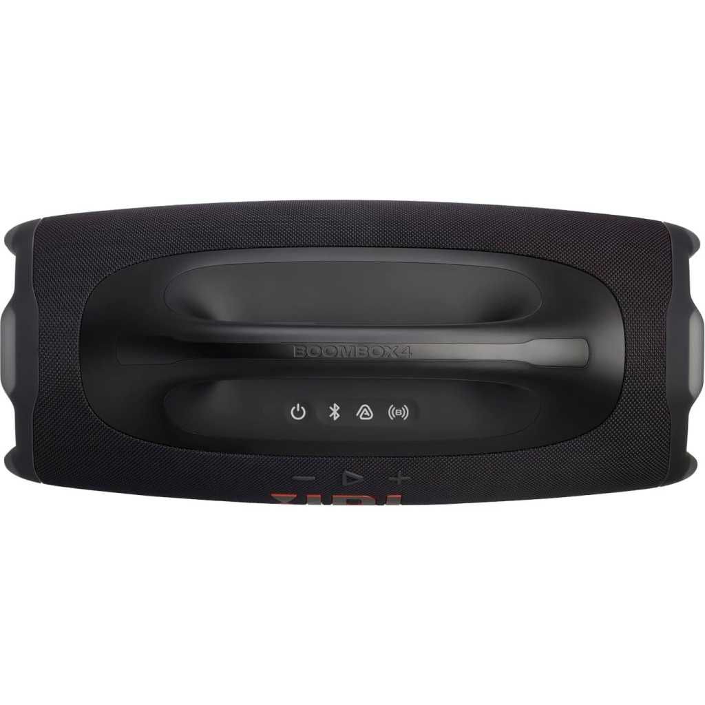 • Unbeatable JBL Pro Sound with AI Sound Boost: We’re talking massive sound with deep and punchy bass. The redesigned JBL Boombox 4 packs in two bigger woofers, two tweeters and three passive radiators, so every track hits harder and sounds cleaner. And with AI Sound Boost, we don’t have to lift a finger—this smart tech analyzes our music in real time and adjusts the sound to give us more power with less distortion, even when we turn it all the way up.