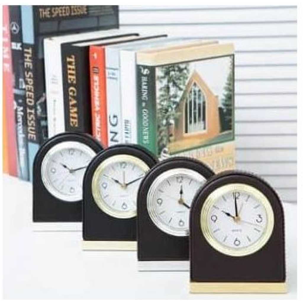 Leather Alarm Clock Mute Movement Hotel Table Clock Desktop Decoration Organizer Bell With Light Battery Powered Quartz For Bedroom Bedside Clock In Guest Rooms Living Room Decor