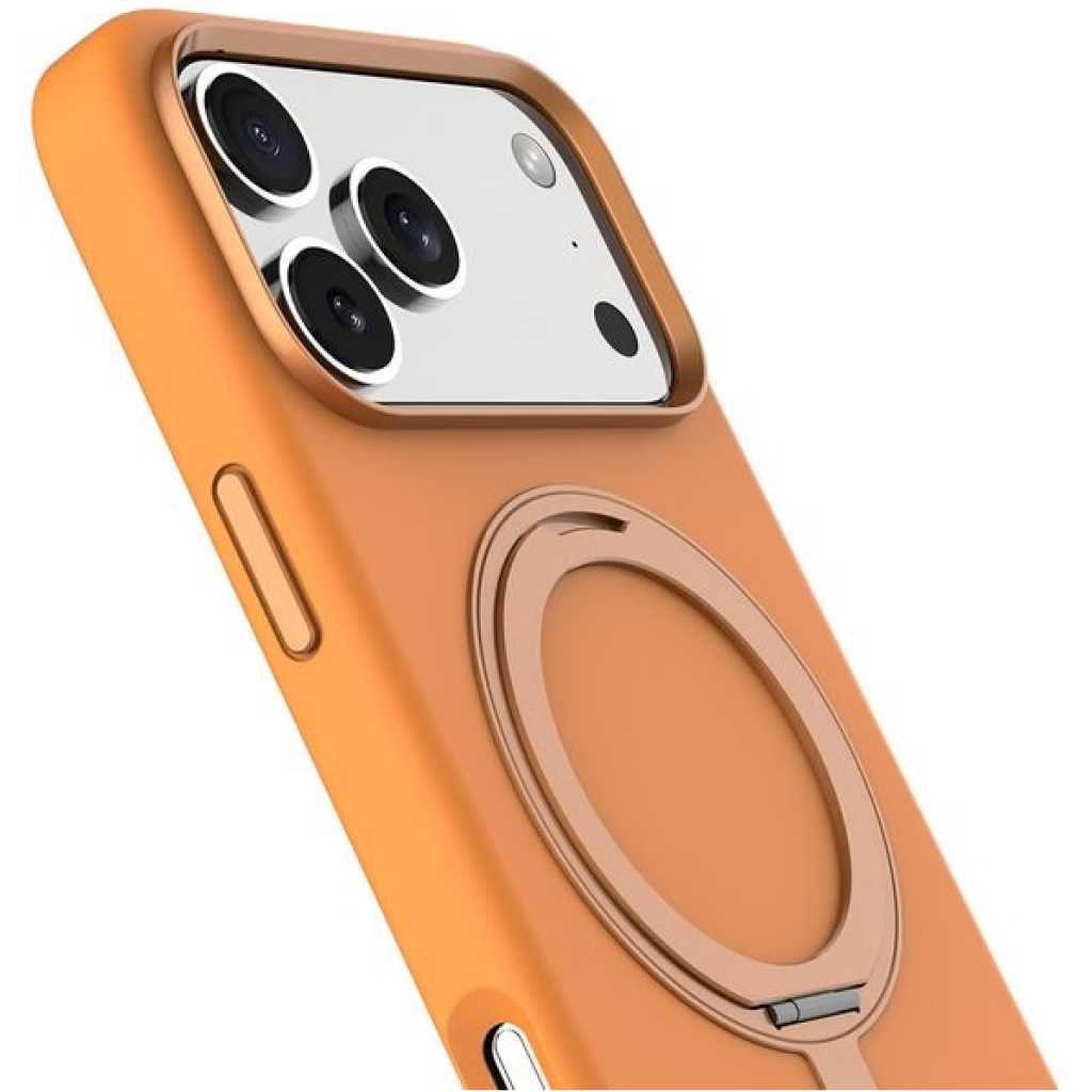 Levelo Iris Pro MagSafe Liquid Silicone Case with Built-in 360° Kickstand for iPhone 17 Pro Max, Metal Accents, Shock-Resistant Bumper, Aluminum Alloy Frame for Camera & Buttons, Drop-Tested, Strong Magnets, Premium Silicone Grip – Orange