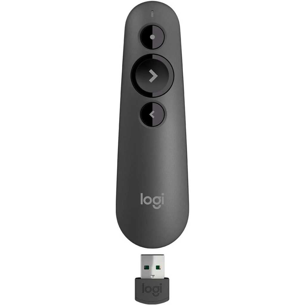 Introducing the R500, a plug-and-play presentation remote that allows you to navigate slides and laser point from up to 20 meters (65 feet) away.1 deliver your presentation with ease and confidence thanks to the unmistakable three-button design and R500’s comfortable, secure fit in hand. The R500 is optimized for most devices and popular presentation software – and you can customize buttons, check battery life, and set an on-screen timer in the Logitech presentation app.