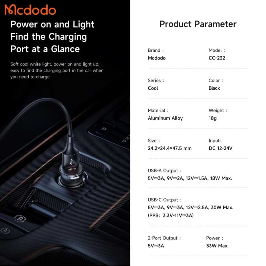 Mcdodo CC-2320 Cool Series LED Fast Car Charger PD33W 1C1U