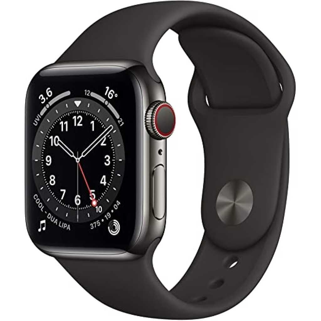 New Apple Watch Series 6 (GPS + Cellular, 40mm) – Graphite Stainless Steel Case with Black Sport Band