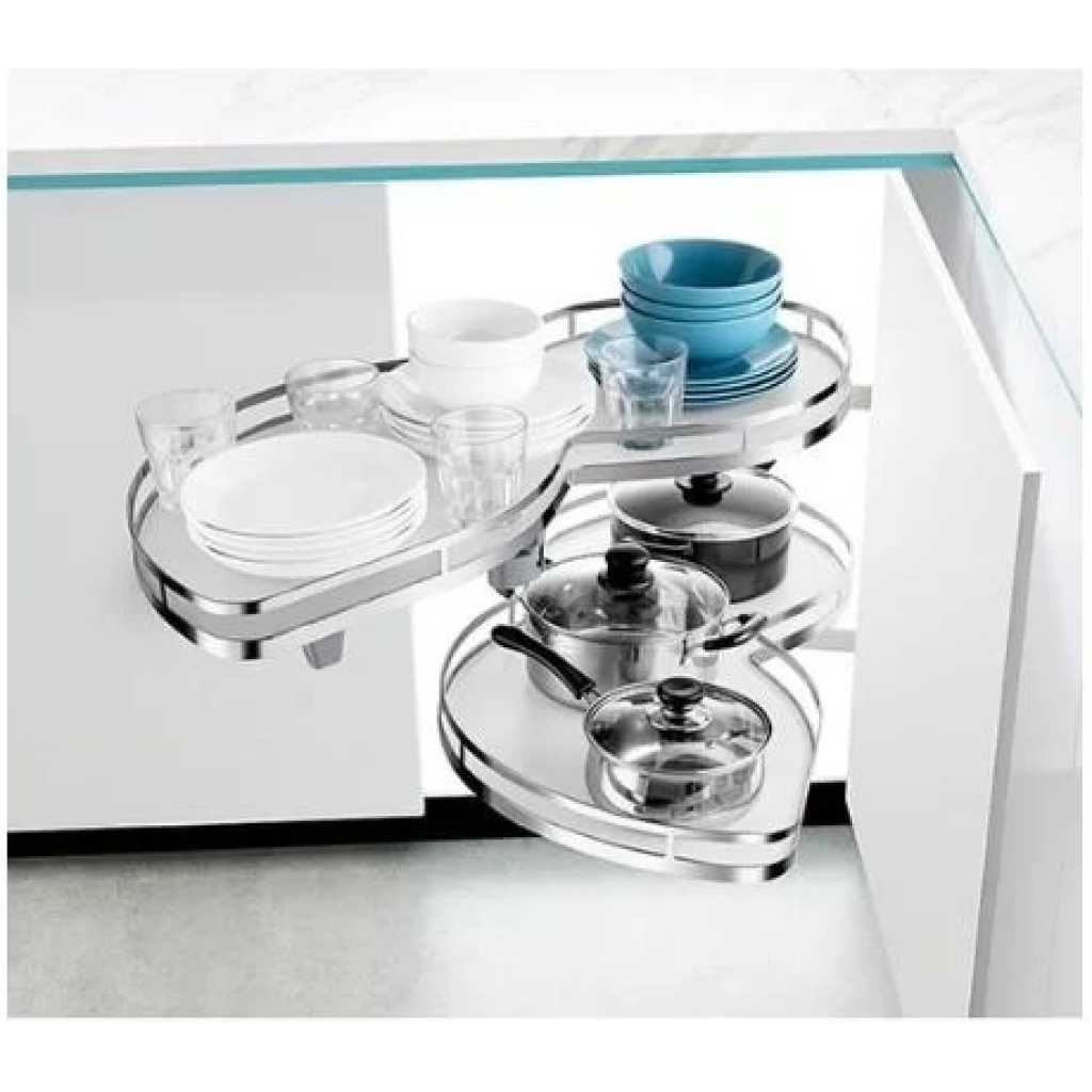This product is designed to be installed in a corner kitchen cabinet. Available in right or left-corner versions. Pair with other Newmatic kitchen appliances and hardware for the perfect kitchen system.