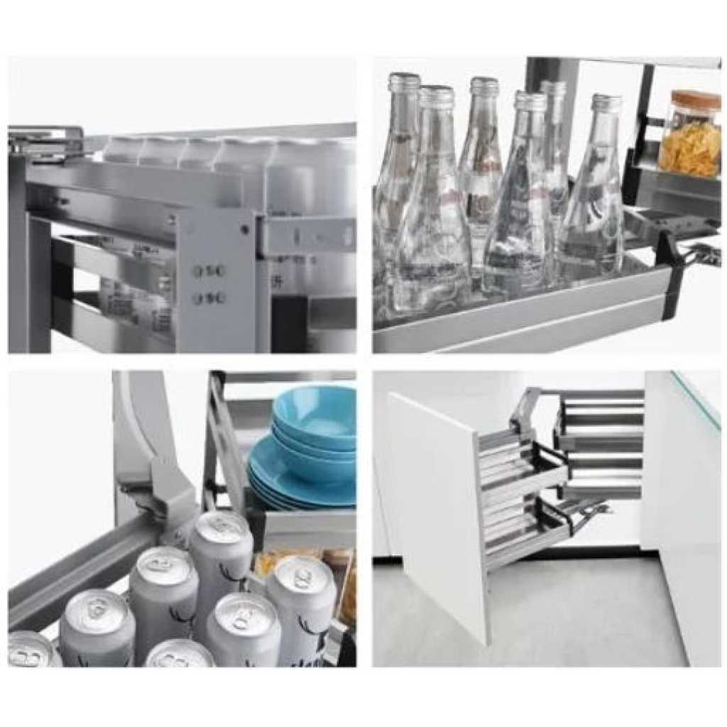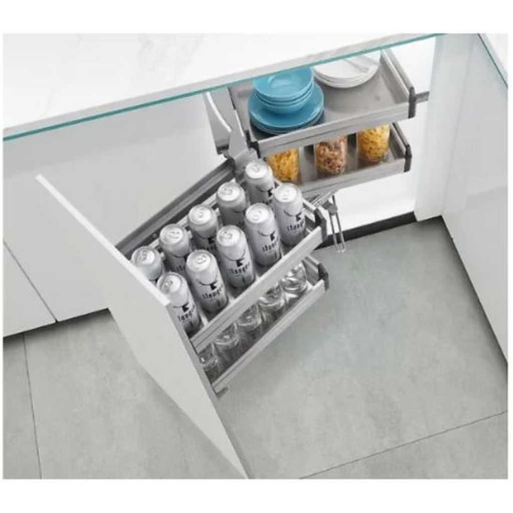 This product comes in right or left corner versions and is designed to be installed in a corner kitchen cabinet. Pair with other Newmatic kitchen appliances and hardware for the perfect kitchen system.