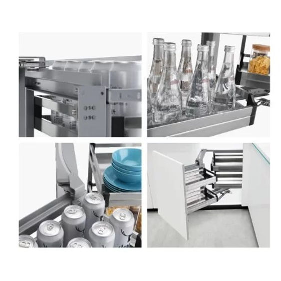This product comes in right or left corner versions and is designed to be installed in a corner kitchen cabinet. Pair with other Newmatic kitchen appliances and hardware for the perfect kitchen system.
