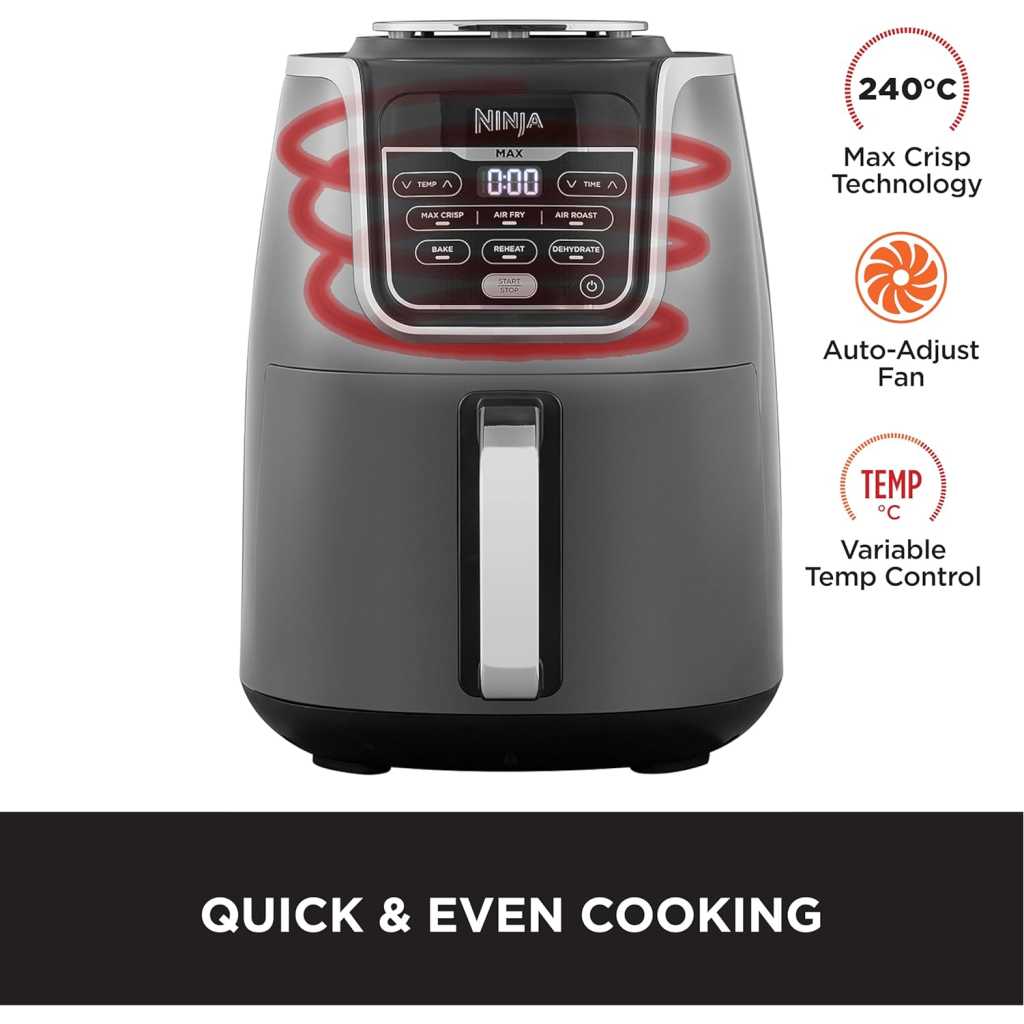Ninja 5.2 Litres Air Fryer Max Xl, Max Crisp, Air Roast, Bake, Reheat, Dehydrate, 1750 Watts, Grey and Black, AF160ME, 2 Years Warranty