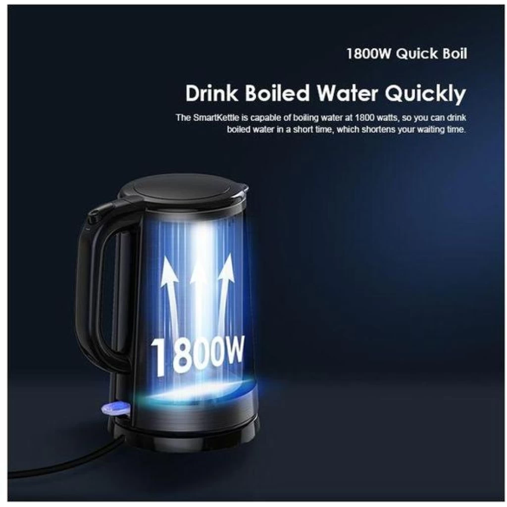 The SmartKettle provides more precise temperature control functions. When water gets boiled, the kettle will automatically stop boiling. When dry-burning is detected, the power will be automatically shut off to prevent accidents.