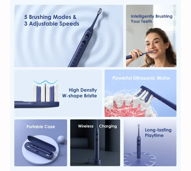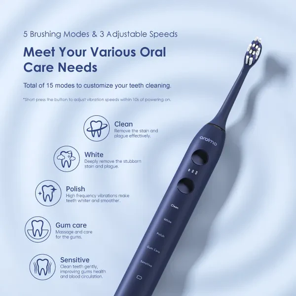 • 5 Brushing Modes & 3 Adjustable Speeds–Meet Your Various Oral Care Needs