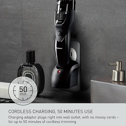 Keep your beard trimmer powered and ready for the next trim with an included, matching AC charging/storage stand. An indicator light glows red while charging is active. Enjoy up to 50 minutes of cordless power.