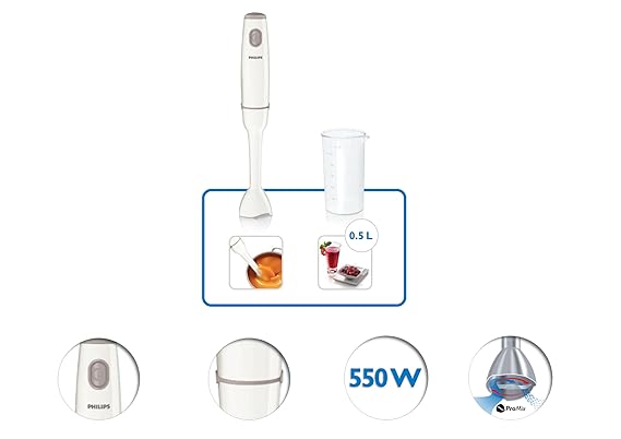 Philips Daily Collection Hand Blender HR1600/00 550-Watt, Highly Efficient, Convenient and Easy to Maintain, Dish Washer Safe Parts