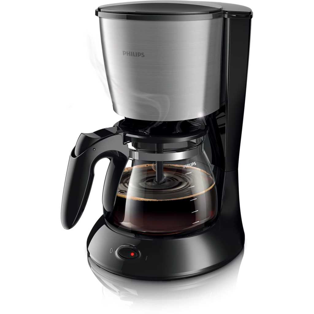 Get the Philips HD7457 Daily Collection Coffee Maker with LED power switch for a perfect cuppa joe. This sleek black coffee maker makes a perfect addition to your contemporary kitchen. It features a drip stop that interrupts ongoing coffee ewing process whenever you take out its large 1.2L glass jug. This jug can hold 10 to 15 cups of coffee at a time, depending on your cup size. The coffee maker’s onboard water level indicator helps you keep track of how many cups you filled, eliminating guesswork. All the detachable parts of this appliance can be safely washed in your dishwashers. Physical Features Key Features Drip Stop Mechanism Dishwasher Safe Unique Water Level Indicator 1.2L Glass Jug LED Power Switch Drip Stop Mechanism The Philips HD7457 Daily Collection Coffee Maker comes with a drip stop mechanism that interrupts coffee ewing whenever you take out its large glass jug. Drip stop mechanism prevents coffee from dripping down on the unit, thus eliminating the need to clean this appliance frequently. Dishwasher Safe The Philips HD7457 Daily Collection Coffee Maker is extremely easy to clean and maintain. It has detachable parts that you can simply pop into your dishwasher when they need cleaning. Unique Water Level Indicator The Philips HD7457 Daily Collection Coffee Maker comes with an innovative water level indicator. It helps you keep track of how many cups you have filled. Thus, you can know precisely when it is time to refill the water. 1.2L Glass Jug The Philips HD7457 Daily Collection Coffee Maker comes with a neat looking 1.2L glass jug. Depending on your cup size, this jug can accommodate 10 to 12 cups of coffee at any given time, which eliminates the need to refill frequently. LED Power Switch It is is easy to know when the Philips HD7457 Daily Collection Coffee Maker is on. When you switch on the appliance, the LED light glows to indicate its status. Voltage: 220-240V, Frequency: 50-60Hz