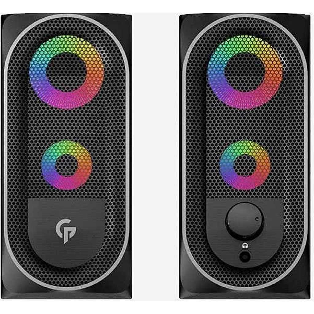 Porodo Stereo Gaming Speakers have 10W. With the Lighting touch sensor, you can change the color, anytime you like. The body uses non-magnetic materials to isolate magnetic forces. You can safely use it in your office or room without worrying about the magnetization of your monitor. 3.5mm universal plug is more varied, it is suitable for computers, tablets, PS5, and most mobile phones. RGB Light is powered by USB, using power bank and mobile phone charger to supply power, pick up anytime and anywhere. With the Volume Control Knob, you can adjust the sound, for the better gaming experience.