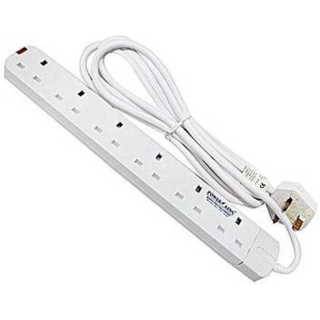 Power King 6 Ways Power King Extension Cable- 3 Meter – White
