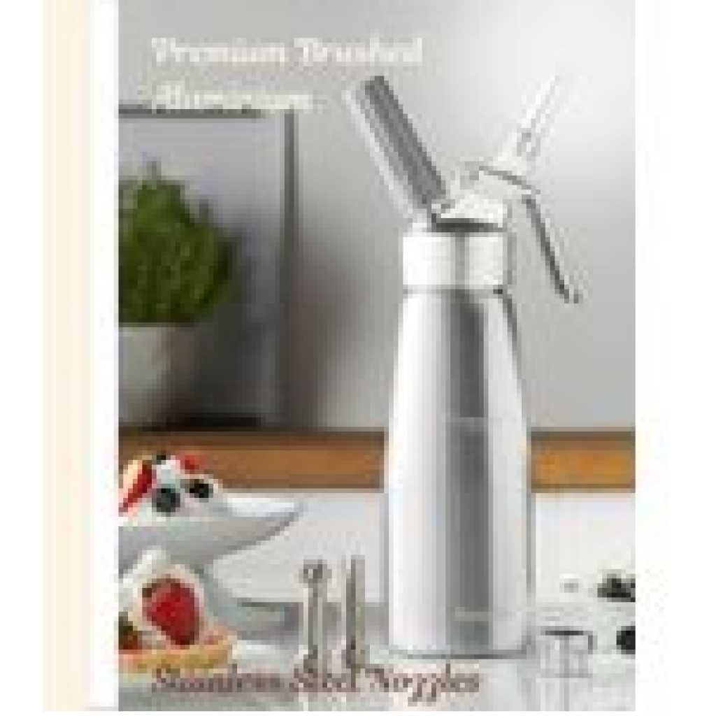 - Versatile: designed for cold foaming and hot foaming. Includes 3 stainless steel nozzles with decorative shapes. It works with gas fillings (N2O).