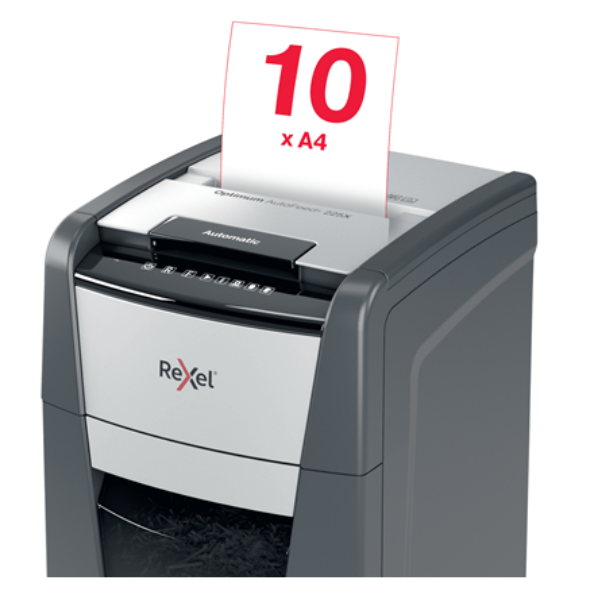 • The Rexel Optimum AutoFeed+ 225X is a high-performance automatic shredder designed for busy offices and individuals who require a secure and efficient way to dispose of confidential documents. This user-friendly shredder boasts a robust set of features, making it the perfect choice for those seeking a reliable and convenient shredding solution.Automatic Feeding for Uninterrupted Workflow: